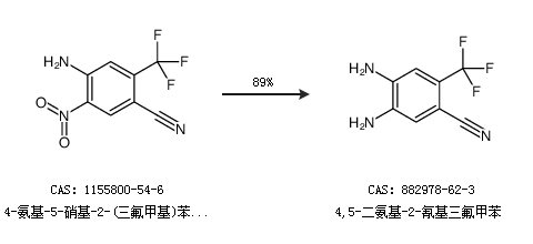 1.通过4-氨基-5-硝基-2-(三氟甲基)苯甲腈合成4,5-二氨基-2-氰基三氟甲苯,收率约89%;