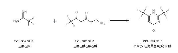 1.通过三氟乙脒和三氟乙酰乙酸乙酯合成2,6-双(三氟甲基)嘧啶-4-醇