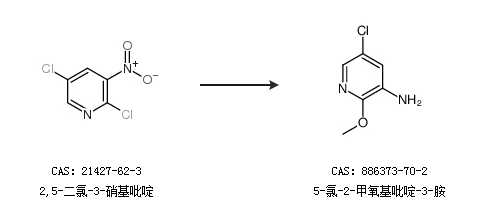 1.通过2,5-二氯-3-硝基吡啶合成5-氯-2-甲氧基吡啶-3-胺