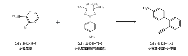 2.通过2-溴苯腈和4-氨基苯硼酸频哪醇酯合成4-氨基-联苯-2-甲腈
