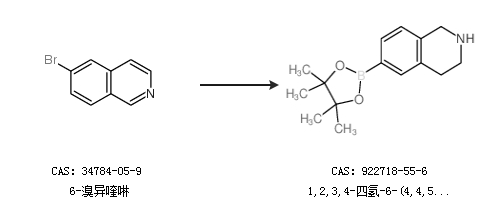 1.通过6-溴异喹啉合成1,2,3,4-四氢-6-(4,4,5,5-四甲基-1,3,2-二噁硼烷-2-基)-异喹啉