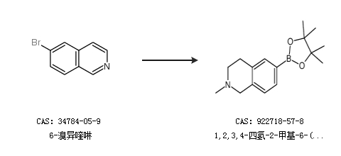 1.通过6-溴异喹啉合成1,2,3,4-四氢-2-甲基-6-(4,4,5,5-四甲基-1,3,2-二噁硼烷-2-基)-异喹啉
