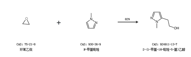 1.通过环氧乙烷和N-甲基吡唑合成2-(1-甲基-1H-吡唑-5-基)乙醇,收率约82%;