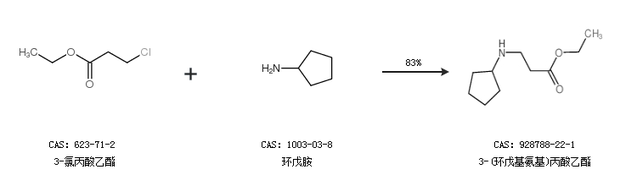 1.通过3-氯丙酸乙酯和环戊胺合成3-(环戊基氨基)丙酸乙酯,收率约83%;