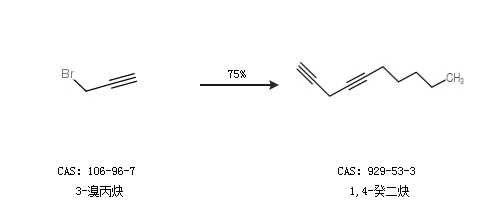 1.通过3-溴丙炔合成1,4-癸二炔,收率约75%;