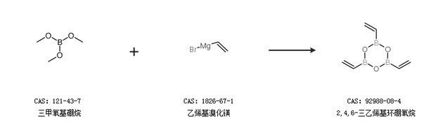 1.通过三甲氧基硼烷和乙烯基溴化镁合成2,4,6-三乙烯基环硼氧烷