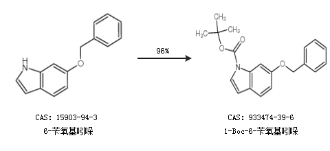 1.通过6-苄氧基吲哚合成1-Boc-6-苄氧基吲哚,收率约96%;