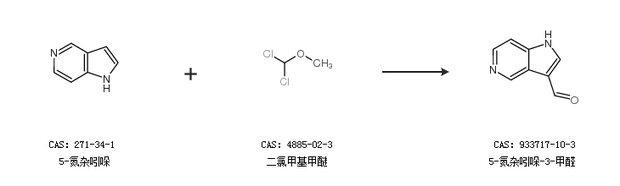 1.通过5-氮杂吲哚和二氯甲基甲醚合成5-氮杂吲哚-3-甲醛