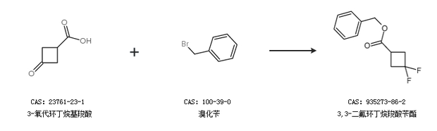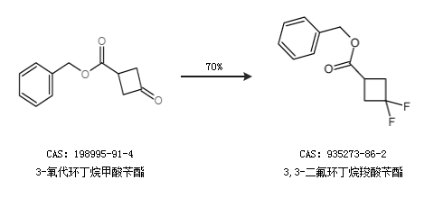 1.通过3-氧代环丁烷甲酸苄酯合成3,3-二氟环丁烷羧酸苄酯,收率约70%;