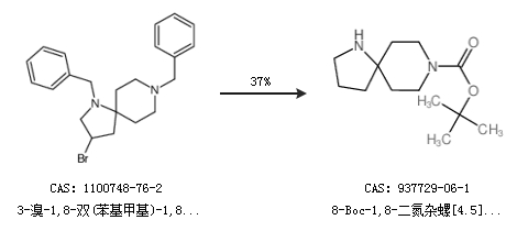 1.通过3-溴-1,8-双(苯基甲基)-1,8-二氮杂螺[4.5]癸烷合成8-Boc-1,8-二氮杂螺[4.5]癸烷,收率约37%;