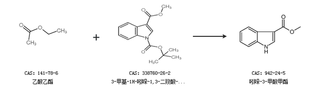 1.通过乙酸乙酯和3-甲基-1H-吲哚-1,3-二羧酸-1-叔丁酯合成吲哚-3-甲酸甲酯