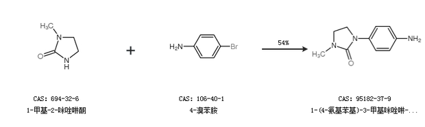 1.通过1-甲基-2-咪唑啉酮和4-溴苯胺合成1-(4-氨基苯基)-3-甲基咪唑啉-2-酮,收率约54%;