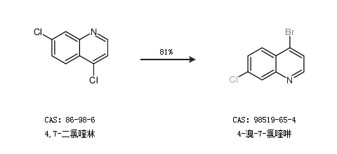 1.通过4,7-二氯喹林合成4-溴-7-氯喹啉,收率约81%;