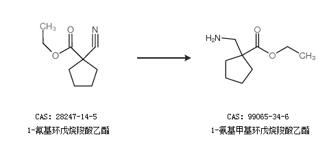 1.通过1-氰基环戊烷羧酸乙酯合成1-氨基甲基环戊烷羧酸乙酯