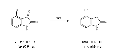 2.通过4-溴吲哚满二酮合成4-溴吲哚-2-酮,收率约94%;