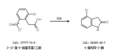 1.通过2-(2-溴-6-硝基苯基)乙酸合成4-溴吲哚-2-酮,收率约93%;