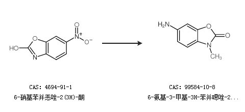 1.通过6-硝基苯并恶唑-2(3H)-酮合成6-氨基-3-甲基-3H-苯并噁唑-2-酮