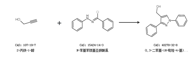 1.通过2-丙炔-1-醇和N-苯基苯羰基亚肼酰氯合成(1,3-二苯基-1H-吡唑-4-基)-甲醇