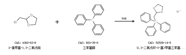 1.通过2-溴甲基-1,3-二氧戊烷和三苯基膦合成(1,3-二氧戊环-2-基)甲基三苯基溴化瞵,收率约54%;