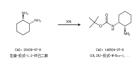 2.通过左旋-反式-1,2-环己二胺合成(1R,2R)-反式-N-Boc-1,2-二氨基环己烷,收率约30%;