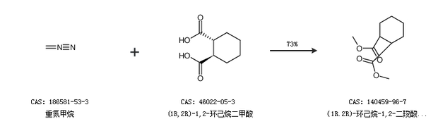 2.通过重氮甲烷和(1R,2R)-1,2-环己烷二甲酸合成(1R.2R)-环己烷-1,2-二羧酸二甲酯,收率约73%;