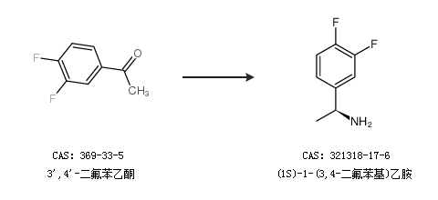 1.通过3'',4''-二氟苯乙酮合成(1S)-1-(3,4-二氟苯基)乙胺