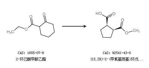 1.通过2-环己酮甲酸乙酯合成(1S,2R)-2-(甲氧基羰基)环戊烷羧酸