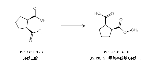 2.通过环戊二酸合成(1S,2R)-2-(甲氧基羰基)环戊烷羧酸