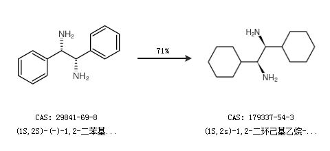 1.通过(1S,2S)-(-)-1,2-二苯基乙二胺合成(1S,2s)-1,2-二环己基乙烷-1,2-二胺,收率约71%;