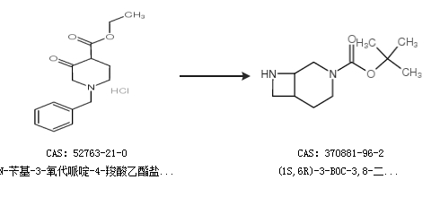 2.通过N-苄基-3-氧代哌啶-4-羧酸乙酯盐酸盐合成(1S,6R)-3-BOC-3,8-二氮杂双环[4.2.0]辛烷