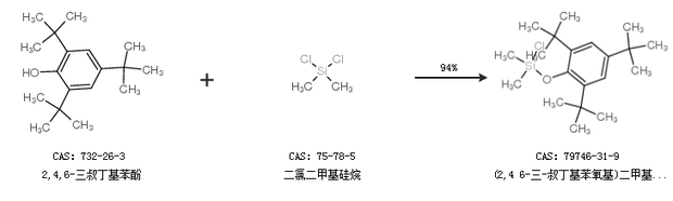 1.通过2,4,6-三叔丁基苯酚和二氯二甲基硅烷合成(2,4 6-三-叔丁基苯氧基)二甲基氯硅烷,收率约94%;