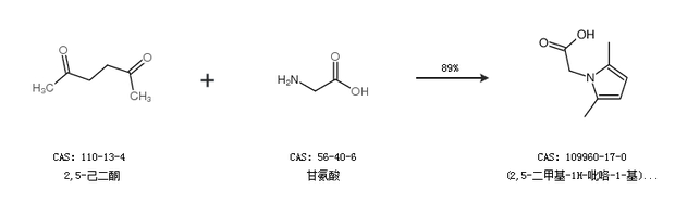 1.通过2,5-己二酮和甘氨酸合成(2,5-二甲基-1H-吡咯-1-基)乙酸,收率约89%;