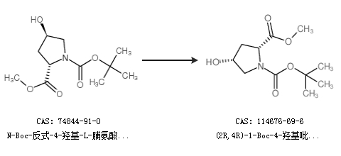 1.通过N-Boc-反式-4-羟基-L-脯氨酸甲酯合成(2R,4R)-1-Boc-4-羟基吡咯烷-2-甲酸甲酯