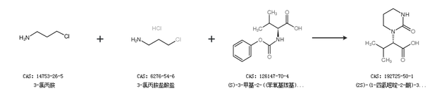 2.通过3-氯丙胺、3-氯丙胺盐酸盐和(S)-3-甲基-2-((苯氧基羰基)氨基)丁酸合成(2S)-(1-四氢嘧啶-2-酮)-3-甲基丁酸