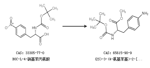 2.通过BOC-L-4-硝基苯丙氨酸合成(2S)-3-(4-氨基苯基)-2-[(叔丁氧基羰基)氨基]丙酸甲酯