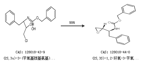 1.通过(2S,3s)-3-(苄氧基羰基氨基)-1-氯-2-羟基-4-苯基丁烷合成(2S,3S)-1,2-环氧-3-苄氧羰基氨基-4-苯基丁烷,收率约99%;