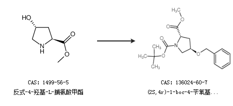 2.通过反式-4-羟基-L-脯氨酸甲酯合成(2S,4r)-1-boc-4-苄氧基吡咯烷-2-二羧酸甲酯