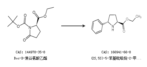 1.通过Boc-D-焦谷氨酸乙酯合成(2S,5S)-5-苯基吡咯烷-2-甲酸乙酯