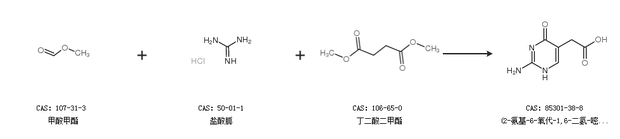2.通过甲酸甲酯、盐酸胍和丁二酸二甲酯合成(2-氨基-6-氧代-1,6-二氢-嘧啶-5-基)-乙酸