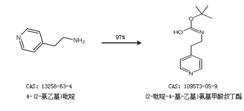1.通过4-(2-氨乙基)吡啶合成(2-吡啶-4-基-乙基)氨基甲酸叔丁酯,收率约97%;