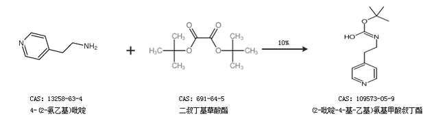 2.通过4-(2-氨乙基)吡啶和二叔丁基草酸酯合成(2-吡啶-4-基-乙基)氨基甲酸叔丁酯,收率约10%;