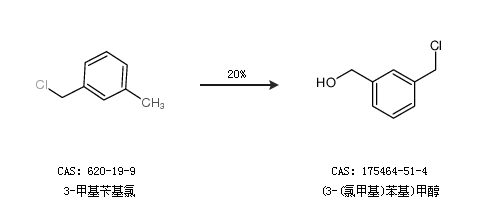 2.通过3-甲基苄基氯合成(3-(氯甲基)苯基)甲醇,收率约20%;