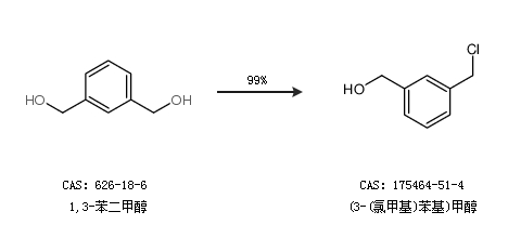 1.通过1,3-苯二甲醇合成(3-(氯甲基)苯基)甲醇,收率约99%;