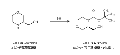 1.通过3(S)-羟基甲基吗啉合成(3S)-3-(羟甲基)吗啉-4-羧酸叔丁酯,收率约98%;