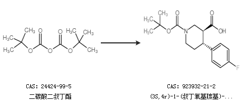 1.通过二碳酸二叔丁酯合成(3S,4r)-1-(叔丁氧基羰基)-4-(4-氟苯基)哌啶-3-羧酸