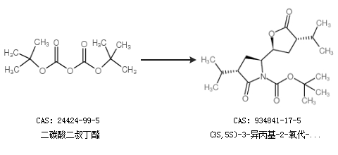 英文别名 (3S,5S)-3-isopropyl-5-((2S,4S)-4-isopropyl-5-oxotetrahydro-furan-2-yl)-2-oxopyrrolidine-1-carboxylic acid tert-butyl ester;(3S,5S)-3-(1-Methylethyl)-2-oxo-5-[(2S,4S)-tetrahydro-4-(1-methylethyl)-5-oxo-2-furanyl]-1-pyrrolidinecarboxylic acid tert-butyl ester;(3S,5S)-tert-Butyl 3-isopropyl-5-((2S,4S)-4-isopropyl-5-oxotetrahydrofuran-2-yl)-2-oxopyrrolidine-1-carboxylate;