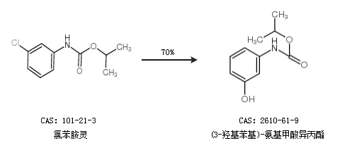 2.通过氯苯胺灵合成(3-羟基苯基)-氨基甲酸异丙酯,收率约70%;