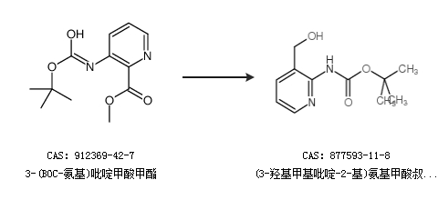 1.通过3-(BOC-氨基)吡啶甲酸甲酯合成(3-羟基甲基吡啶-2-基)氨基甲酸叔丁酯