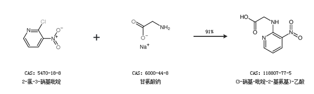 1.通过2-氯-3-硝基吡啶和甘氨酸钠合成(3-硝基-吡啶-2-基氨基)-乙酸,收率约91%;