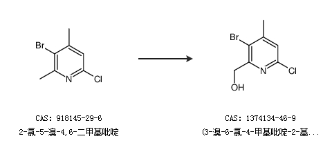 2.通过2-氯-5-溴-4,6-二甲基吡啶合成(3-溴-6-氯-4-甲基吡啶-2-基)甲醇